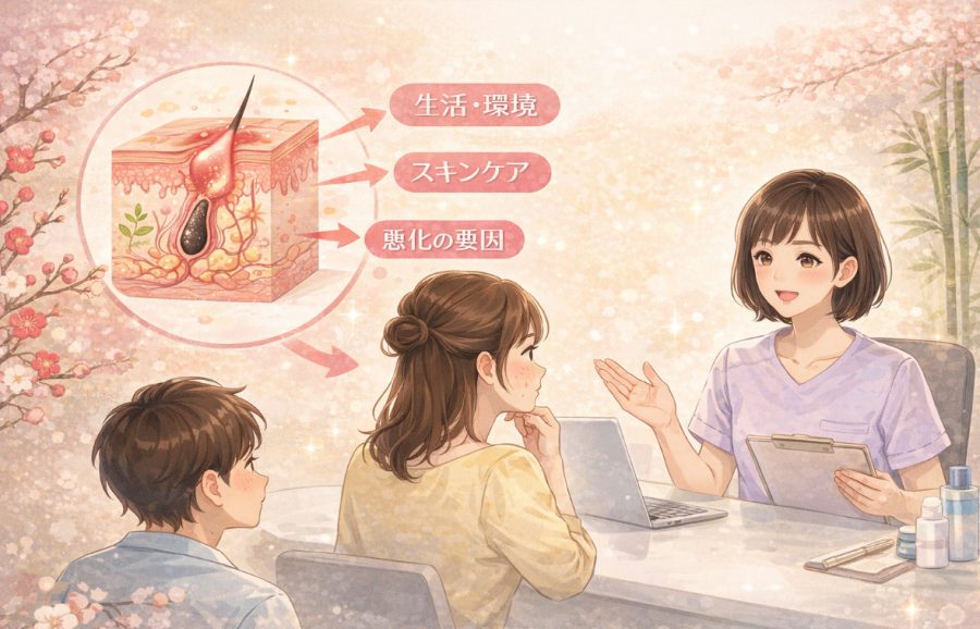 その背景にある皮膚の状態を丁寧に診ることを重視しています。