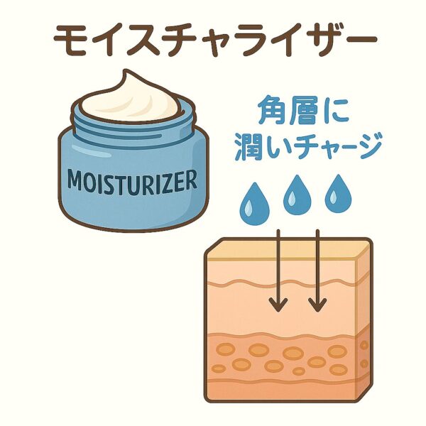モイスチャライザーは、皮膚の角層に水分を取り込み、