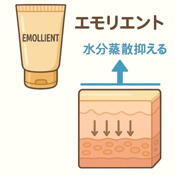 保湿剤は大きく 「エモリエント(Emollient)」 と 「モイスチャライザー(Moisturizer)」 に分けられますが、