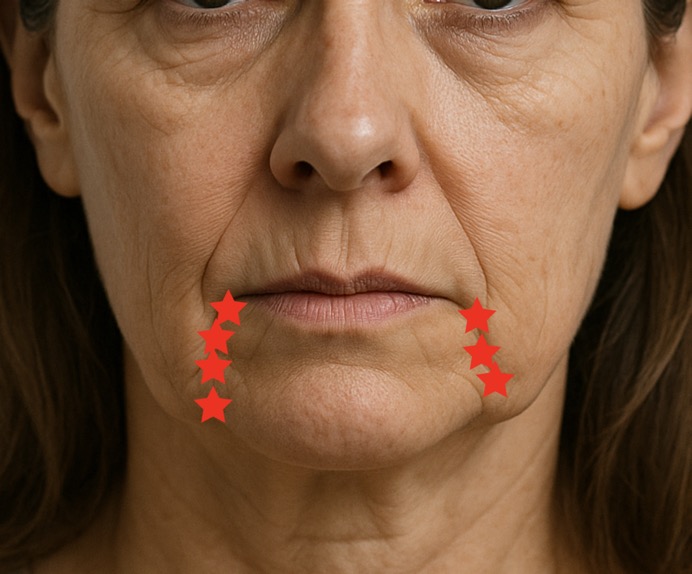 - 口角の支持構造を作る注入(口角外側・オトガイ)